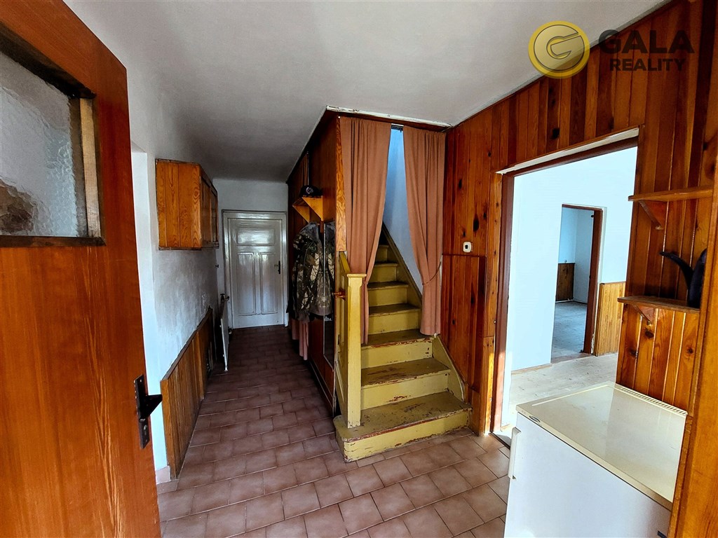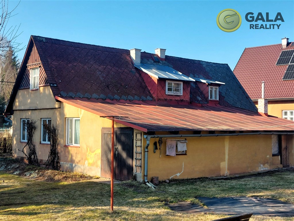 Dům je kombinované konstrukce (roubení, zdivo), dvoupodlažní, se sedlovou střechou, většinově v původním stavu. Přízemí – hlavní vchod přes verandu, chodba se schodištěm, velká obytná místnost, kuchyně, 3x ložnice, koupelna s vanou, toaleta, prádelna, spíž, menší sklípky, průchod do garáže (2 stání) přístupné též ze zahrady. Podkroví je přístupné dřevěným schodištěm a nachází se zde 4 menší obytné místnosti, nízké podkrovní skladovací prostory a WC. Přípojky: voda a kanalizace – veřejná, elektřina 230/400V, zemní plyn zaveden, vytápění je ústřední s teplovodním rozvodem do radiátorů zdroj plynový kombinovaný kotel, kterým je zajištěna i teplá voda, dále možno využít lokální kamna na TP. Pozemek v okolí domu je rovinatý, zatravněný, zadní část je prudce strmá, celý oplocený. Na pozemku se nachází zděná kolna užívaná jako dílna a úložné prostory pro zahradní techniku. Využití: k celoroční rekreaci, či k trvalému bydlení, klidné místo, cykloturistika, lesy, letní i zimní sporty, veškerá obslužnost ve středně velkém městě Hostinné (4 km), Vrchlabí a Janské Lázně (15 km), Trutnov (19 km) Špindlerův Mlýn (29 km). Celková plocha 2441 m2 z toho zastavěno cca 205 (dům 174 a kolna 31 m2). Třída energetické náročnosti G. Ihned volné.